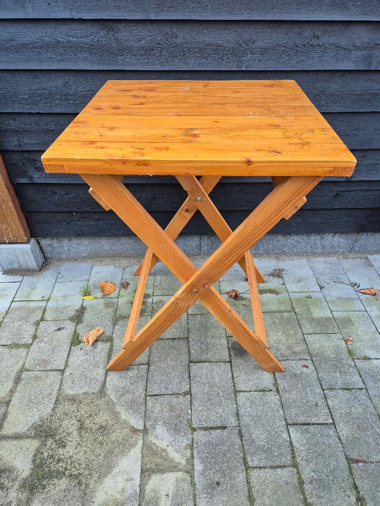 Houten statafel. Inklapbaar. Afmetingen, 78x78x110 minimumprijs is € 25,00