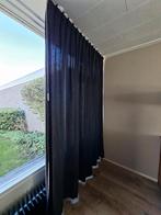 Zwarte gordijnen, niet verduisterend. In goede staat. Worden verkocht vanwege verhuizing. 2 Stuks: hoogte 255cm, breedte per gordijn 260cm (gemeten met plooi). Hangen op een rails van 5m