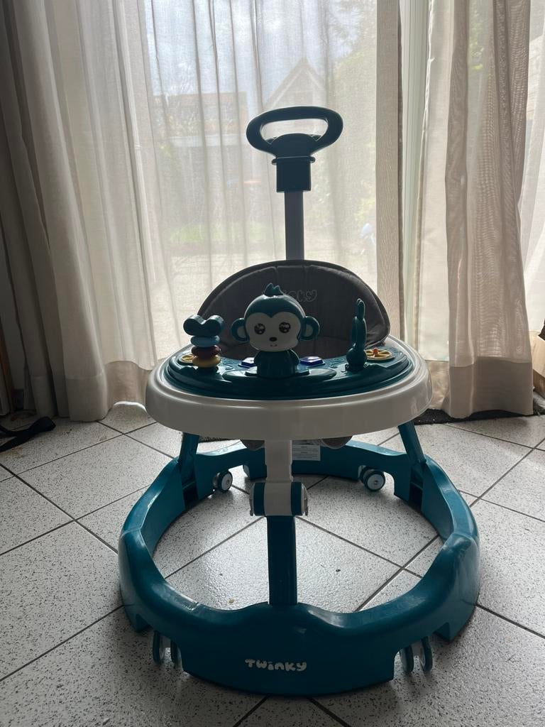 Twinky babywalker in de kleur azur. Leer uw baby zijn eerste stapjes zetten in deze mooie twinky. Heeft de nodige gebruikssporen, maar kan nog gemakkelijk een ronde mee. Stang er achter is makkelijk e