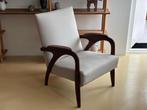 Een prachtige leesstoel uit de jaren 60. Verkeert in nieuwstaat. De zitting is opnieuw bekleed met een ecru zandkleurige wollen me