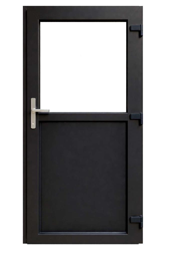 Kunststof Deur 1/2 Glas Dubbel Antraciet Klink Rechts