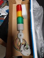 Een ongebruikte driekleuren indicatiebaken met 12 volt leds. Te gebruiken om status van machines aan te geven of processen maar ook of je kapperszaak bijvoorbeeld vol of minder vol zit. Nog in doos. I