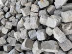 Gebruikte kinderkopjes / basaltkeien. De stenen zijn verschillend, maar ongeveer 14cm / 14 cm. Per m2 kosten de stenen €25. E