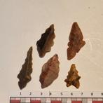 Lot van 5 bijzondere pijlpunten uit het neolithicum van de sahara in mauritanië.