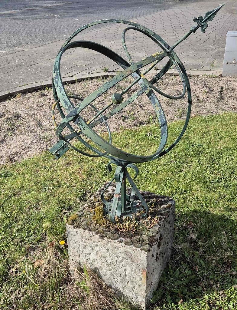 Zonnewijzer hoog 95cm breed 62cm heeft hernieuwde aandacht nodig is van sokkel af