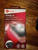 Nieuwe 3-in-1 beschermingskit voor de iphone 16. Bevat een screenprotector, telefoonhoesje en camera bescherming. Biedt volledige