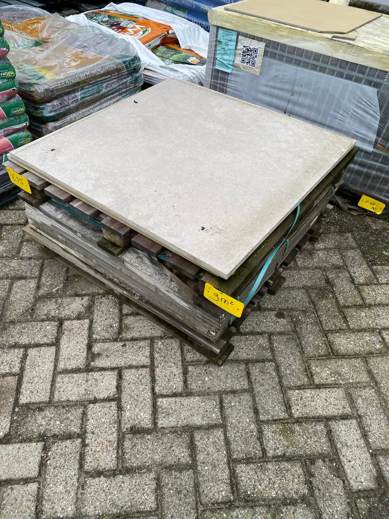 Restpartij keramiek tegels, 2 cm dik en 90 x 90 cm. Ideaal voor terras of tuin. Geschikt voor diverse toepassingen.