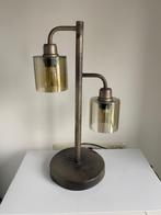 Te koop aangeboden een moderne metalen tafellamp met twee glazen kapjes. Inclusief gloeilampen. Hoogte 52 cm. Moet weg, daarom sle