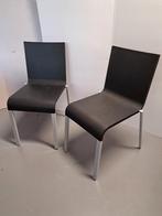 2 vitra bezoekers stoelen ontworpen door maarten van severen. Donker bruine kunststof zitting lichtgrijs onderstel. Stoelen zijn stapelbaar en makkelijk in onderhoud en schoonmaken