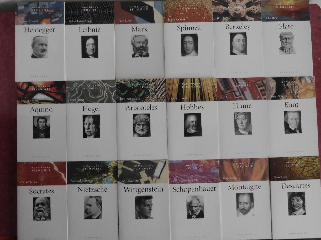 Kopstukken filosofie heidegger spinoza plato kant nietzsche 18 paperbacks, zo goed als nieuw. Mooi schoon van binnen. Heidegger, leibniz, marx, spinoza, berkeley, plato, aquino, hegel, aristoteles, hoZo goed als nieuw Ophalen of Verzenden