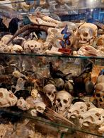 Een uitgebreide collectie van diverse schedels, perfect voor verzamelaars, liefhebbers van taxidermy of educatieve doeleinden. Het assortiment omvat menselijke schedels, dierenschedels en andere uniek