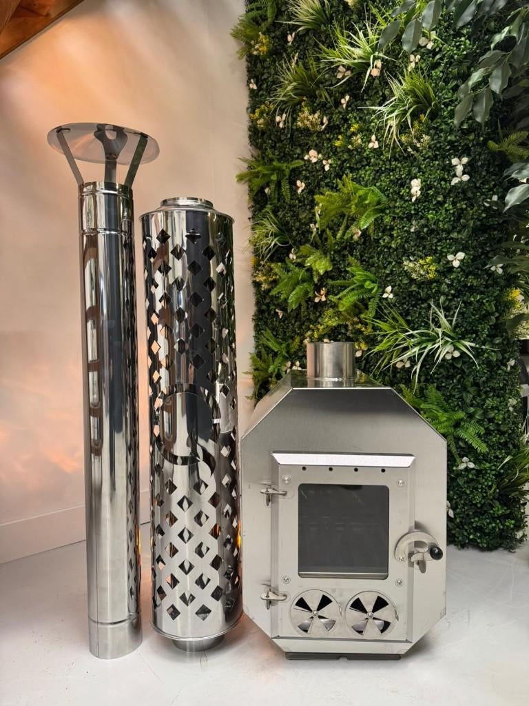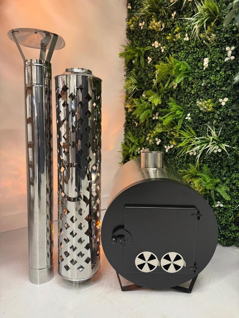 Krachtige cilinder houtgestookte kachel – nu beschikbaar! Gemaakt van hoogwaardig 316 rvs, met lay-out naar keuze en een indrukwekkend vermogen van 45 kw. Perfect voor jouw hottub, zwembad of buitenpr