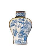 Prachtige blauw-witte porseleinen vaas met gouden accenten. Deze vaas is een uniek decoratiestuk. De vaas is versierd met een gede