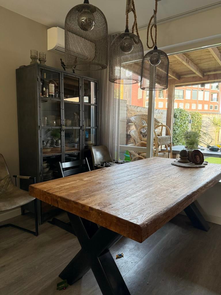Prachtig industrieel tv-meubel van 140 cm breed, gemaakt van mangohout. Het blad heeft wat kleine putjes, maar geen krassen en is eenvoudig op te knappen met lak of leerbalsem. Dit meubel heeft een stGebruikt Ophalen of Verzenden