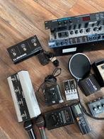 Een verzameling van diverse effecten en apparatuur. Te zien zijn onder andere een alesis midiverb iii, lexicon mpx 100, behringer ultra-di di20, tc electronic g-switch, en een mxr micro amp. Ook enkel