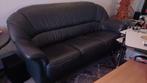 3 zitbank donkerblauw leer met hardhouten binnenwerk. Bank is in zeer goede staat geen barsten of scheuren. Bank moet weg om plaat
