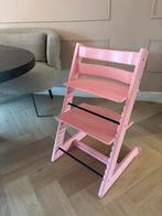 Mooie tripp trapp stoel van stokke. Originele roze kleur (niet zelf geschilderd). Gebruikt (en dus wat gebruikerssporen) maar verder in prima staat.