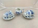 Vier antieke koffie kop en schotels en een melkkannetje gemaakt bij louis regout maastricht (mosa). Ze hebben decor zwiebelmuster