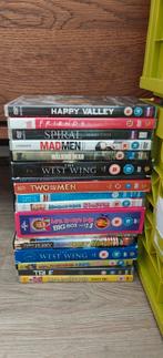 Een uitgebreide collectie van diverse dvd's, inclusief populaire series zoals 'happy valley', 'friends', 'mad men', 'the walking dead', 'the west wing',