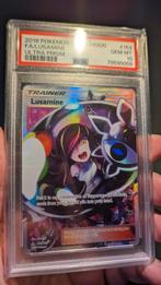 Zeldzame lusamine full art kaart uit de ultra prism set, beoordeeld als een psa 10 gem mint. Een waardevolle toevoeging aan elke pokémon kaart collectie.