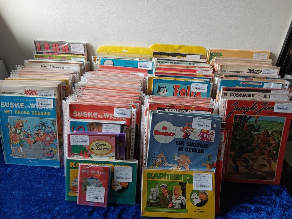 Aangeboden: een uitgebreide collectie van 250 tot 260 stripboeken, waarvan bijna alle afzonderlijk zijn verpakt. De collectie bevat populaire titels zoals asterix, de rode ridder, suske en wiske, colbGelezen Ophalen of Verzenden