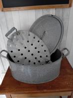 Authentieke grijsgewolkte vispan met bijpassende deksel en inzet. Ideaal voor het bereiden van visgerechten. De pan is in goede st