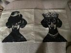 Twee gloednieuwe kussenhoezen met een uniek teckel design, nog in de originele verpakking. De afmetingen zijn 43,5 bij 42 cm. Perfect om je interieur een speelse touch te geven.