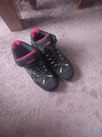 Gedragen werkschoenen in maat 44. De schoenen zijn zwart met rode en witte accenten. Ze zijn voorzien van stalen neuzen en zijn relatief licht en comfortabel. Ideaal voor werkzaamheden waarbij veiligh