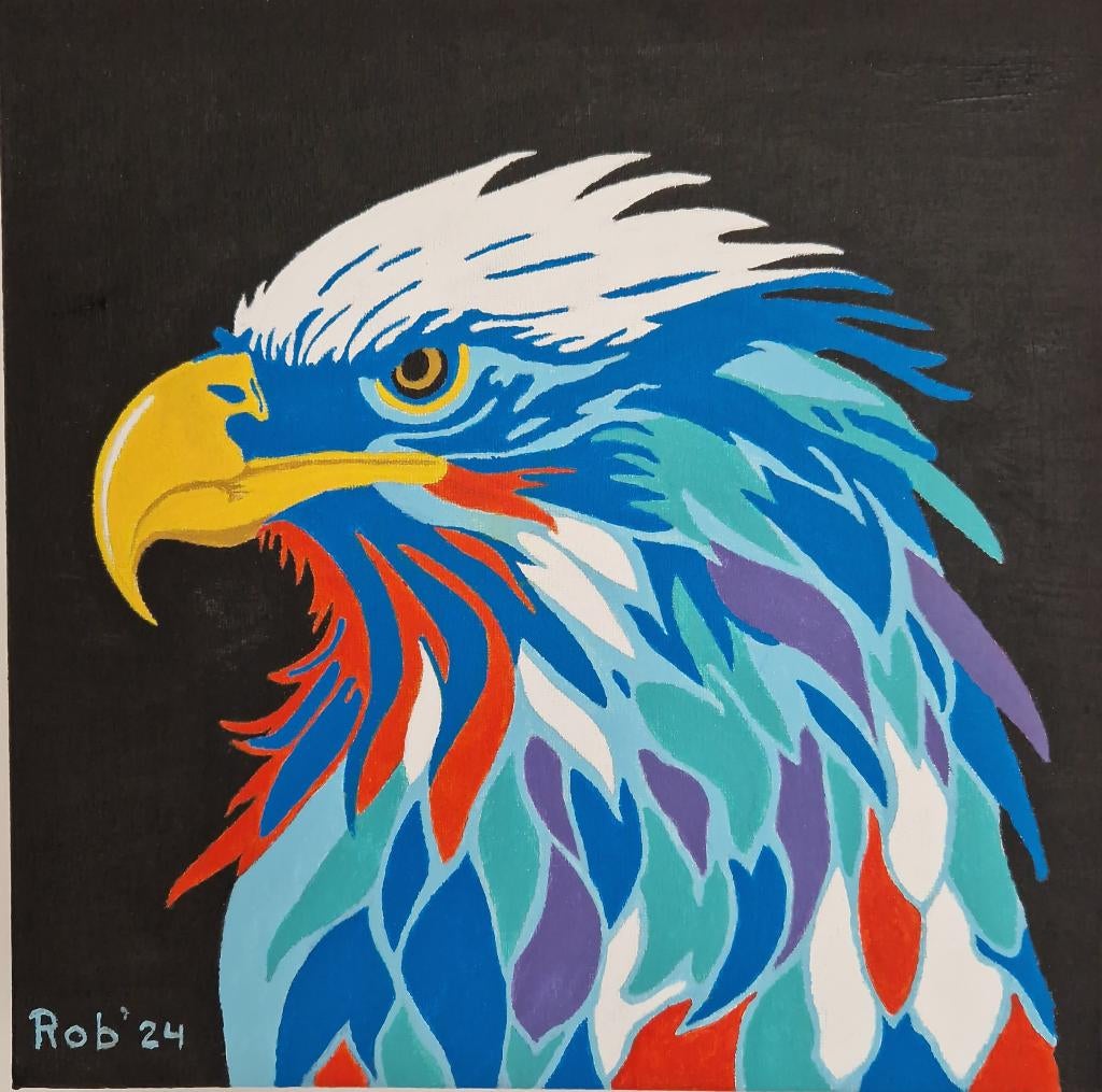 roofvogel, zelf geschilderd op doek met acryl