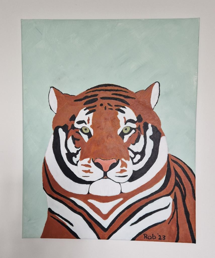 abstracte tijger, zelf geschilderd op doek met acryl