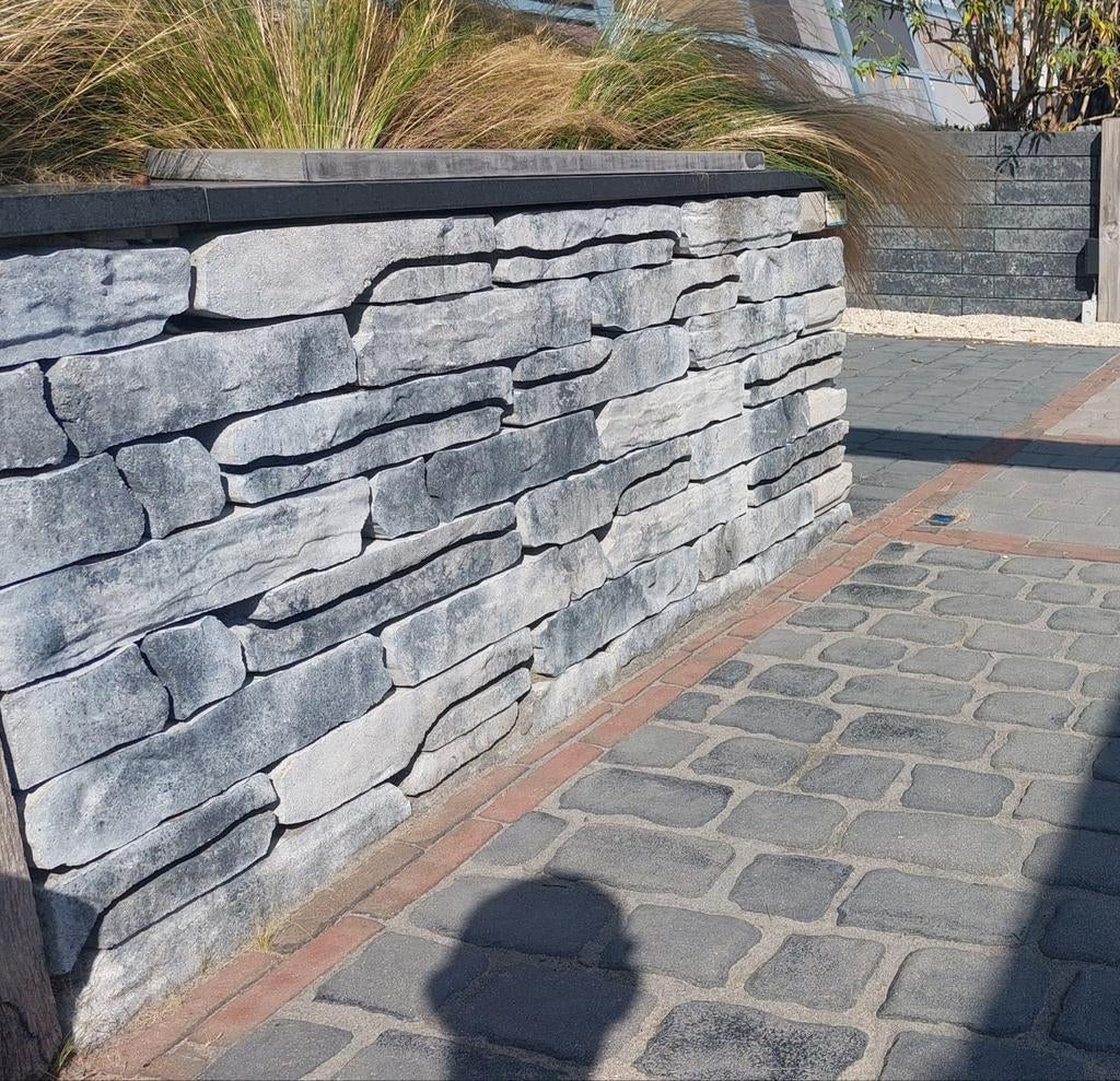Set van gebruikte borderstenen, ideaal voor het afbakenen van bloembedden, een gazon of als kantopsluiting voor een oprit. De stenen zijn van beton en hebben een robuuste uitstraling. Ze zijn in goede