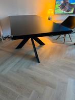 Prachtige zwartbruine houten eettafel van richmond interiors met een robuuste industriële stalen spinpoot. Een tijdloos en stoer model dat in vrijwel elk interieur past. De tafel is 2,5 jaar oud en ge