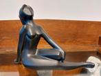 Prachtig zwart beeldje van een liggende vrouw, uitgevoerd in een elegante art deco stijl. Dit decoratieve stuk voegt een vleugje klassieke schoonheid toe aan elk interieur. Het beeldje is gemaakt van