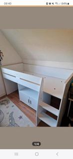 Wegens verandering van de kinderkamer bieden wij een nette halfhoogslaper aan van 1 jaar oud. Let op: exclusief bureau en matras. De trap kan aan beide kanten gemonteerd worden. Afmetingen zijn: 207 x
