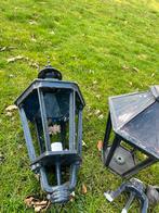 Twee prachtige antieke buitenlampen, ideaal voor het creëren van een klassieke sfeer in uw tuin, op het terras of bij de ingang. De lampen zijn gebruikt en hebben een authentieke, verweerde uitstralin