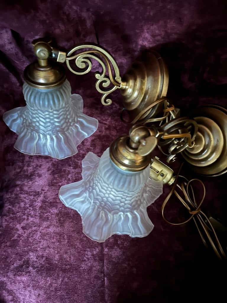 Twee koper/bronskleurige antieke muurlampen‼️