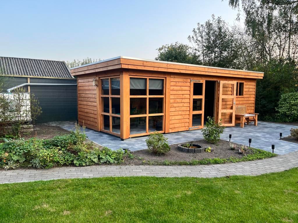 Prefab bouwpakket, deze bestaat uit kant en klare wanden, de dakelementen zijn dan ook makkelijk te monteren. Voor ons een vrij standaard product die snel te leveren is, dus twijfel niet te lang. Hout