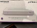 Netgear gc510p insight managed smart cloud switch. 8-Poort gigabit ethernet met 2 sfp poorten. Poe+ ondersteuning. Nieuw compleet met alle accessoires in originele verpakking. Geschikt voor desktop, w