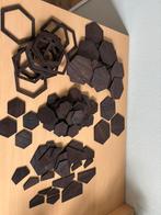 Te koop houten hexagons voor wanddecoratie. 36 Kleine- 19 grote- 15 open + diverse halven zie foto. Hier gebruikt voor trappengat maar ook leuk voor aan wand ed. Maten zie foto