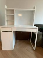Ikea micke bureau met opbouw te koop. Nieuwprijs bij ikea is momenteel €130. Er is een beschadiging aan het werkblad, zie fot