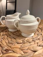Leuk roomstelletje van wedgwood edme. De kleur is roomwit. Het kannetje en suikerpotten zijn puntgaaf; het dekseltje heeft een hee