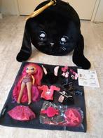Prachtige pop met zwarte, ronde, fluffy koffer. Compleet en in nette staat.