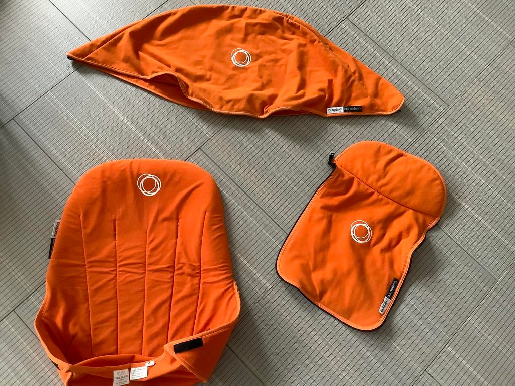 Bugaboo cameleon 1 2 3 oranje fleece bekleding oranje kap, wieg dekje en zit wandelwagenhoes bekleding geschikt voor alle types bugaboo cameleon lichte verkleuring vaste prijs