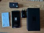Telefoon zelf is amper gebruikt, scherm is perfect maar op de achterkant zitten wat krasjes voor de echte bts army fan is t een he