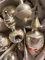 Mooi doosje met 15 stuks oude antieke zilveren kerstballen met bijzondere pegels mooi gesuikerd gebruiksporen naar leeftijd geen g