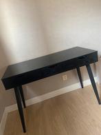 Stijlvol zwart bureau met handige lades voor opslag. Ideaal voor thuiswerken of studeren. In goede staat. Afmetingen (lxbxh): 50x110x77 cm wat lijmrestjes op het blad.