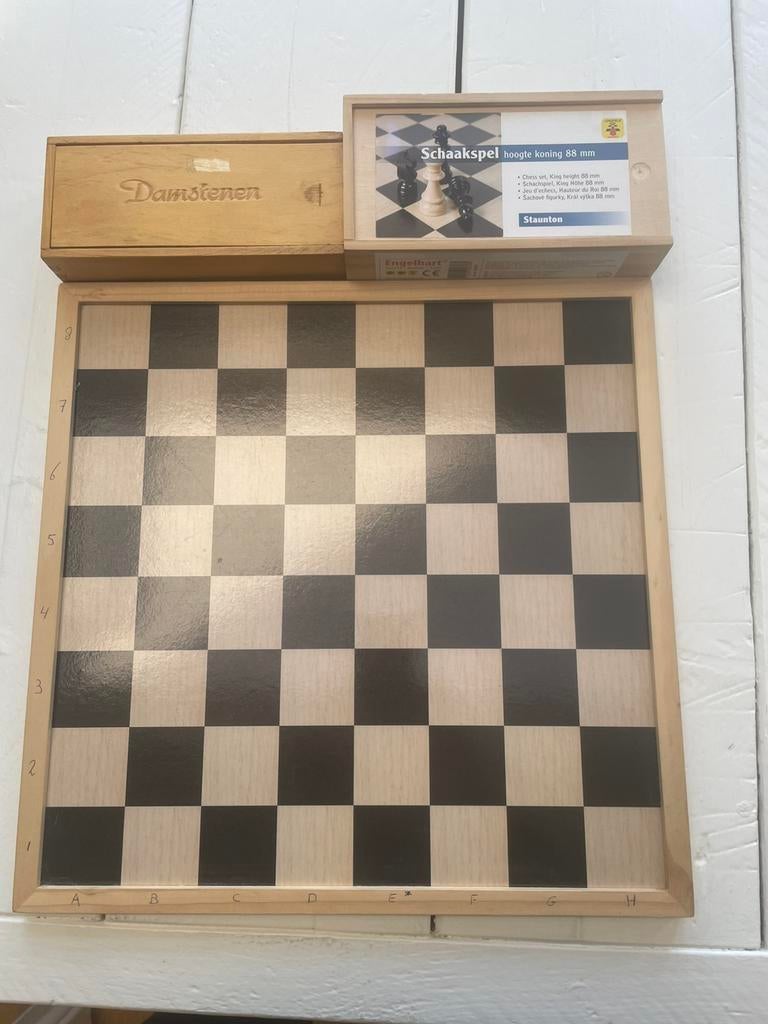 Schaak/dambord 40/40 cm met schaakstukken en damstenen i.g.s.t