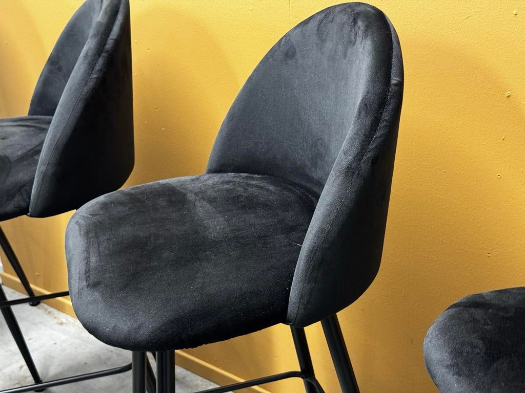 4 zwarte velvet barkrukken, nieuw