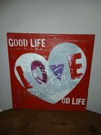 Uniek schilderij met de tekst 'good life' en een groot hart met het woord 'love'. Het schilderij is uitgevoerd in