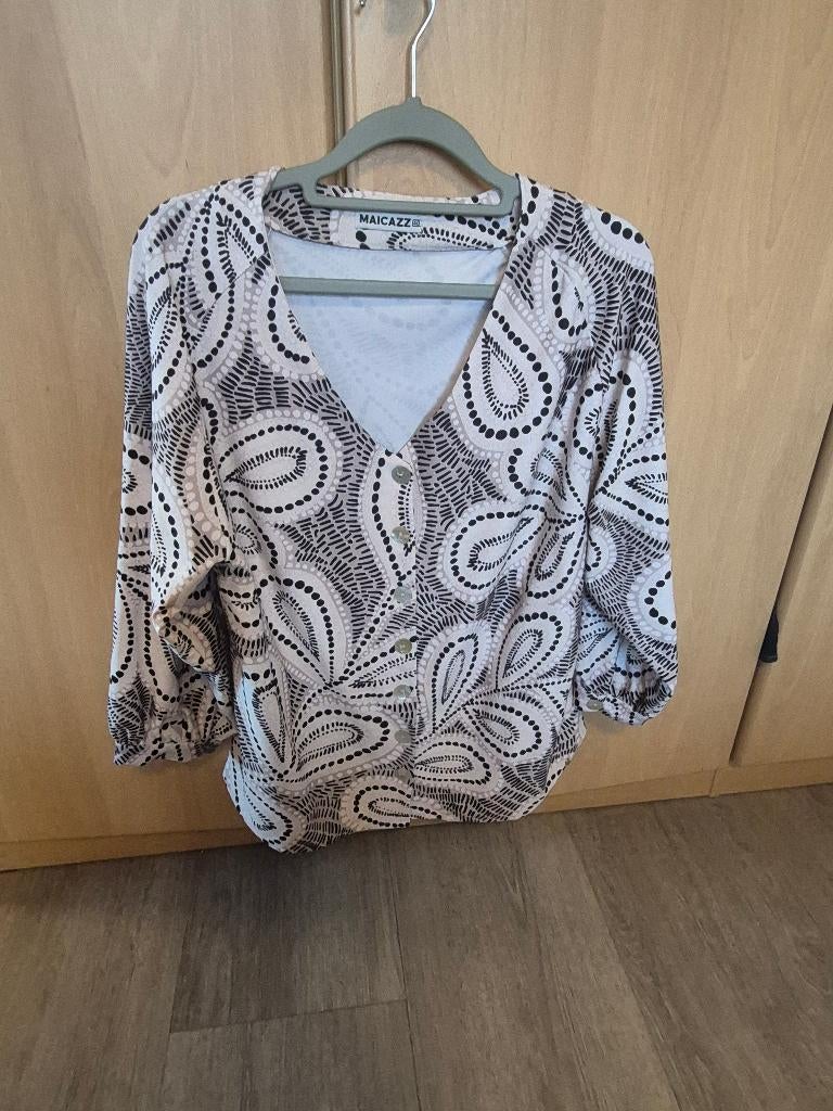 Aangeboden: mooi damespak maat l, bestaande uit jasje met broek. Broek heeft mooie groen bies aan de zijkant, zie foto. 1X gedragen maar door afvallen nu te ruim. Vp 20 euro.Zo goed als nieuw Ophalen of Verzenden